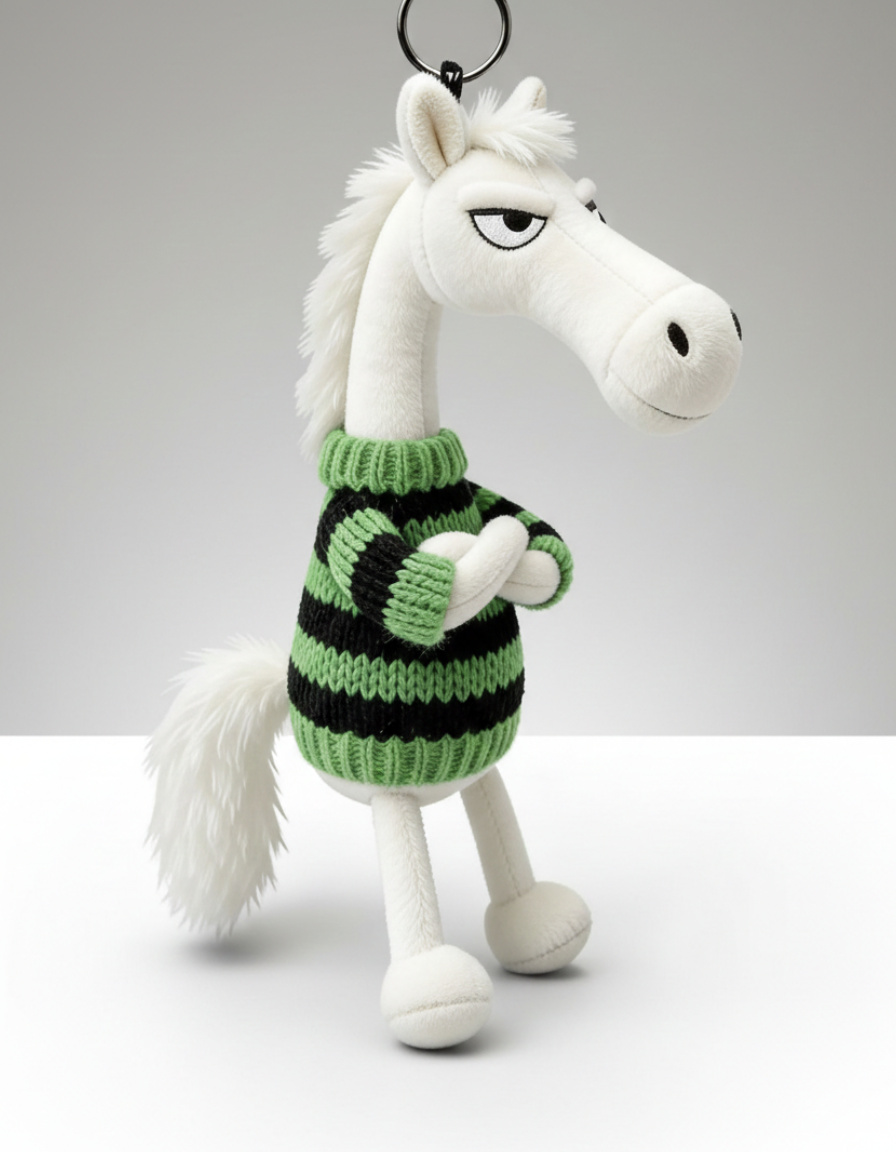 Ce porte-clés est l’accessoire idéal pour celles et ceux qui aiment affirmer leur personnalité avec une pointe d’humour. Son regard espiègle, son attitude faussement boudeuse et son pull tricoté à rayures vertes et noires en font un détail original qui attire instantanément l’attention. Accroché à vos clés, votre sac ou votre sac à dos, il devient un véritable sujet de conversation.