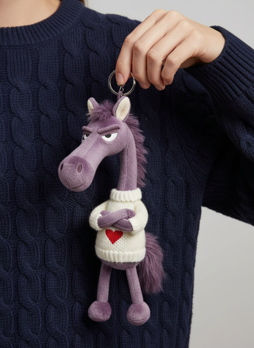 Ce porte-clés est l’accessoire parfait pour celles et ceux qui apprécient une pointe d’humour et une vraie personnalité dans leurs détails du quotidien. Avec son expression boudeuse emblématique et son design stylisé, ce petit cheval en peluche transforme instantanément vos clés, votre sac à main ou votre sac à dos en un véritable point d’attention et en excellent sujet de conversation.