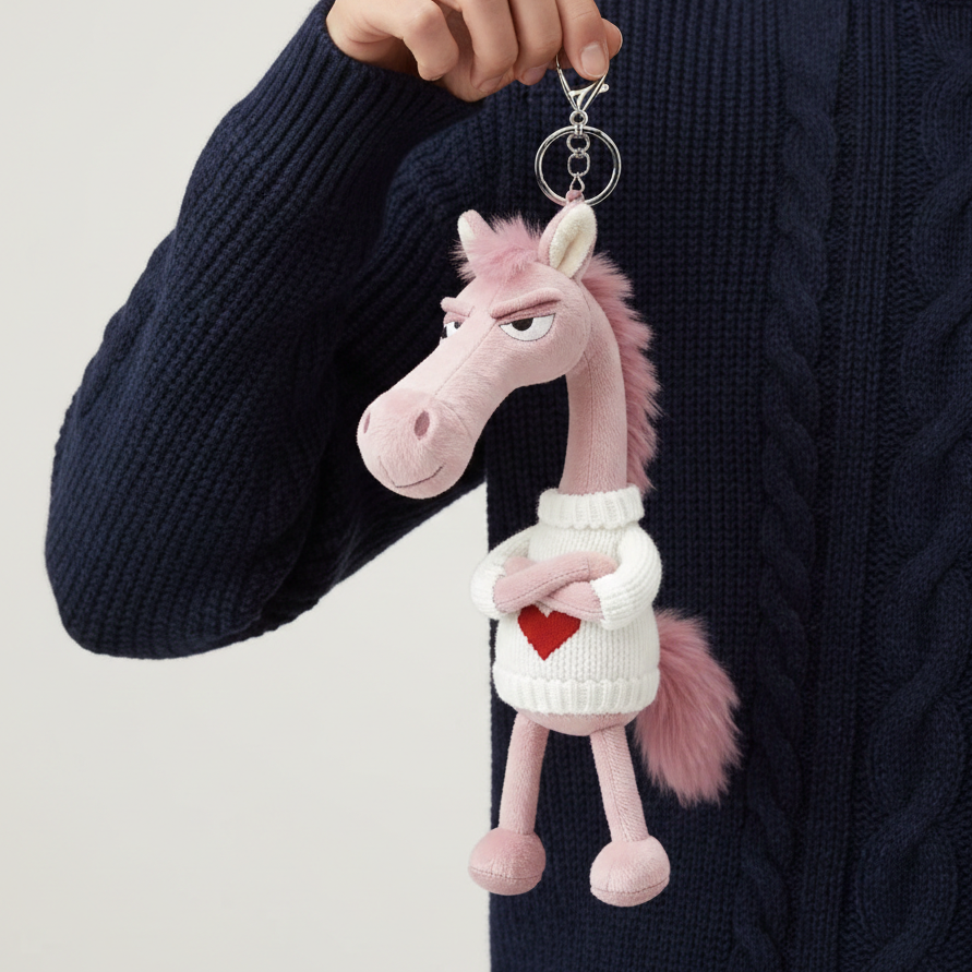 Confectionné en matière ultra douce avec des finitions de qualité, il associe le charme d’une peluche premium à la praticité d’un accessoire résistant conçu pour durer.
