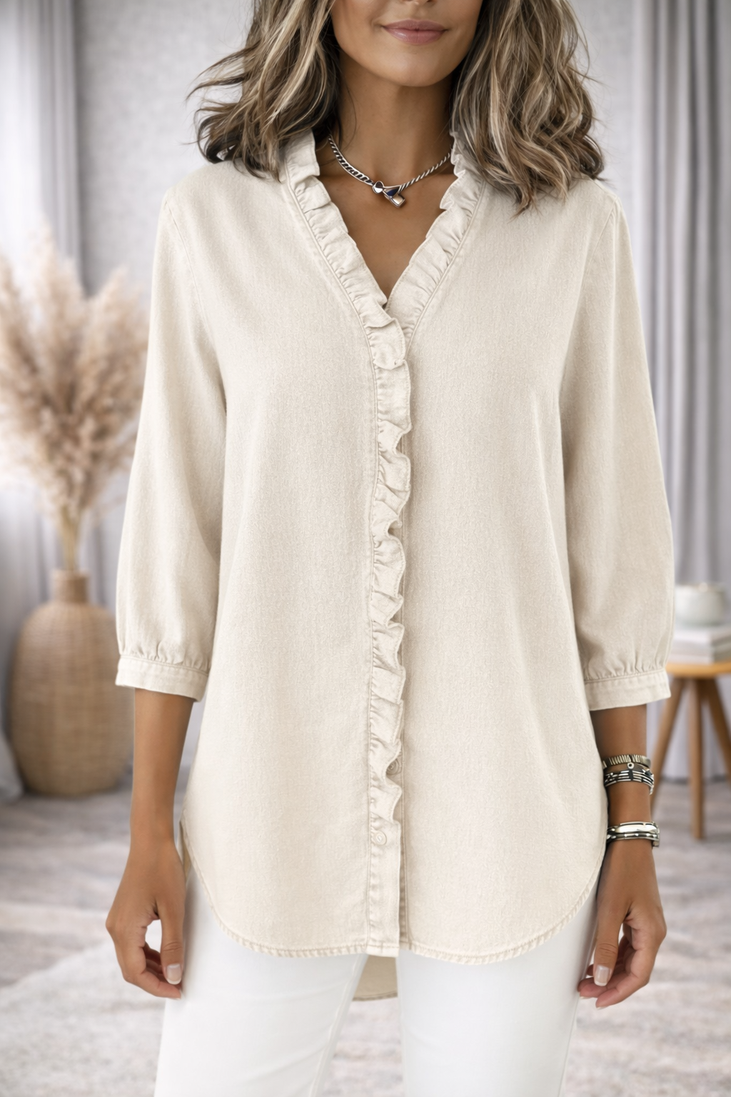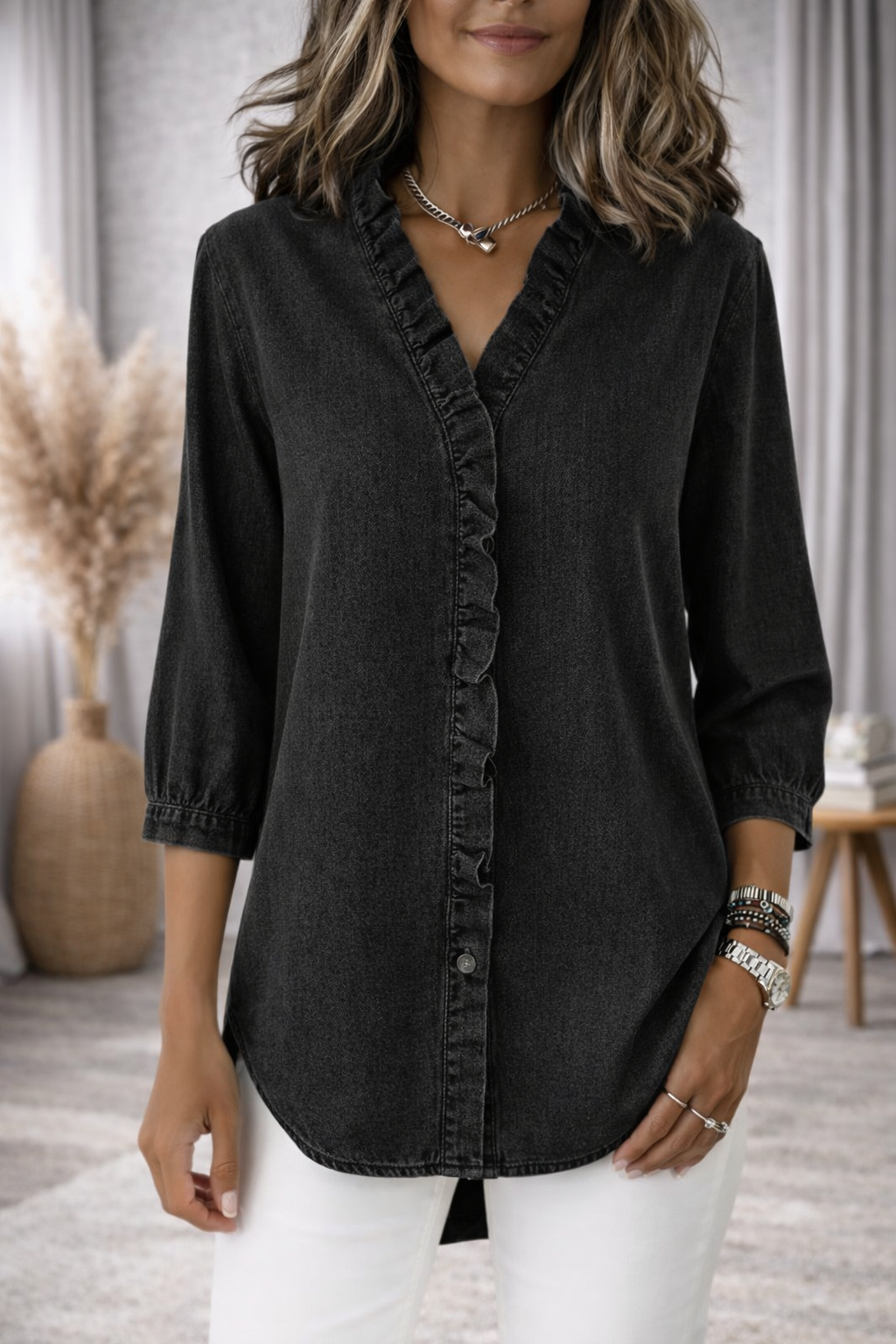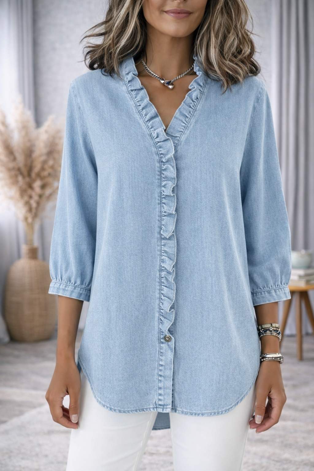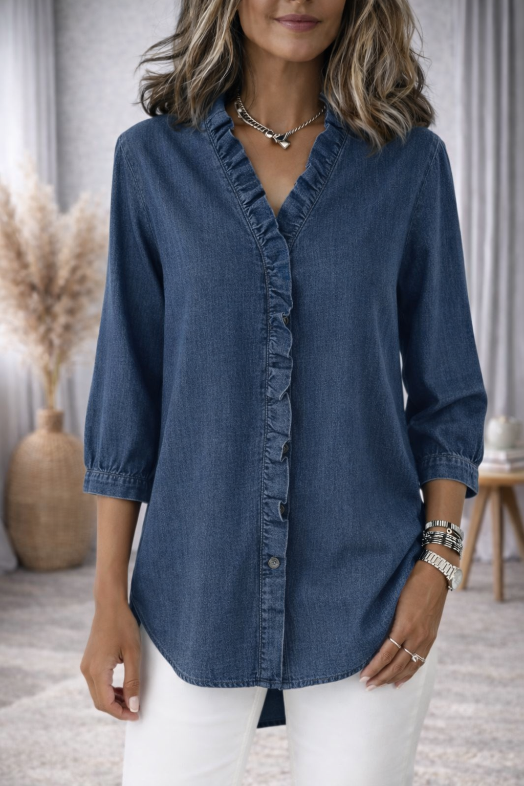 Adele™ - Blouse en Denim Fluide à Col V Volanté